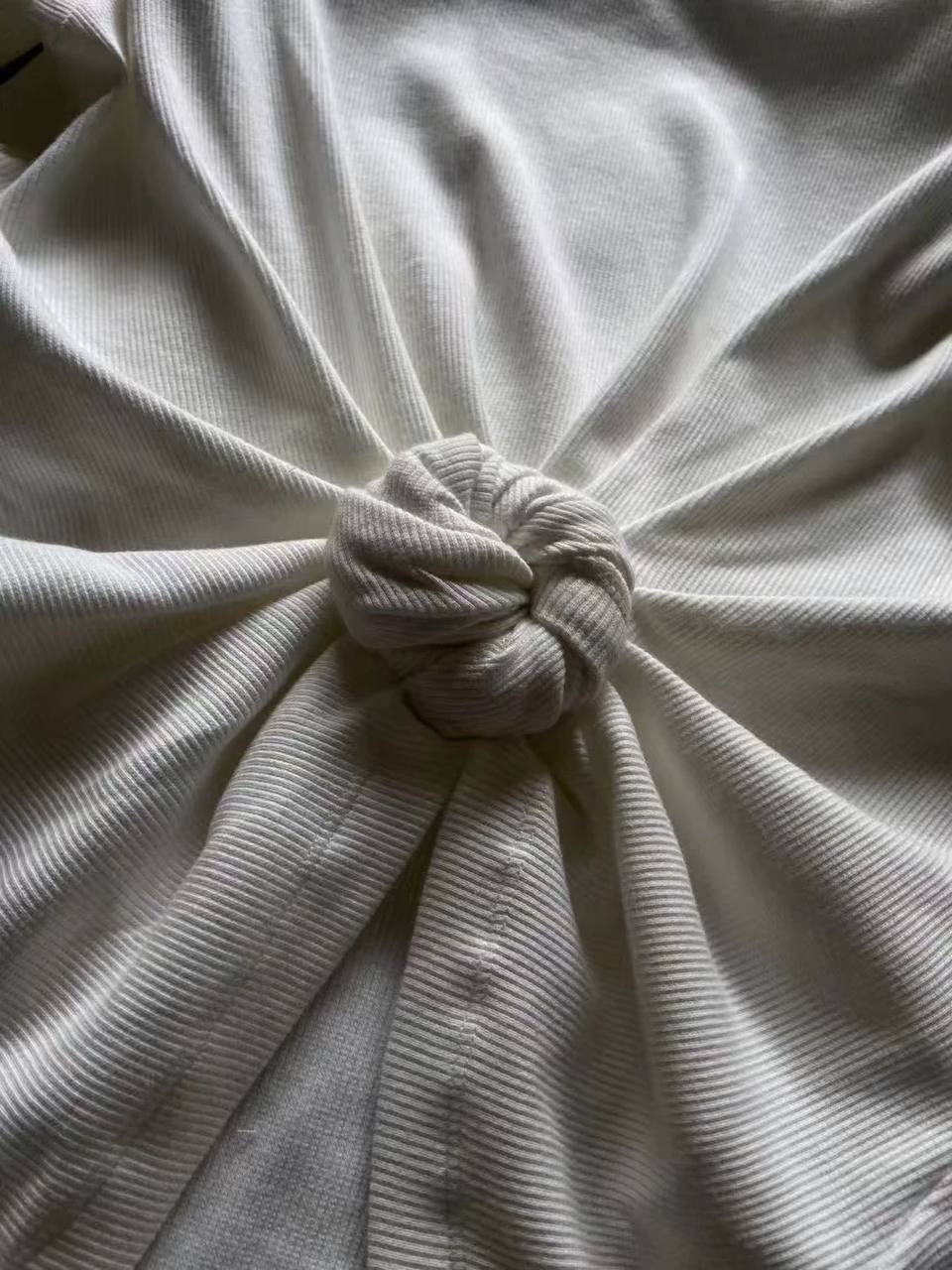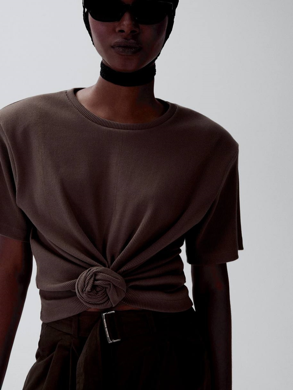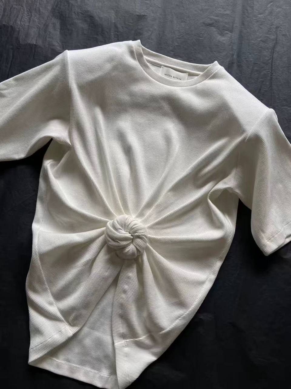 Простой серый и белый топ — это неотъемлемая часть любого отличного капсульного гардероба, и Magda Butrym не исключение. Он сшит из мягкого хлопкового трикотажа, свободного кроя с круглым вырезом, дополненным слегка изогнутыми рукавами и украшен узлом впереди. Носите ее с чем угодно: от джинсов до юбок миди.