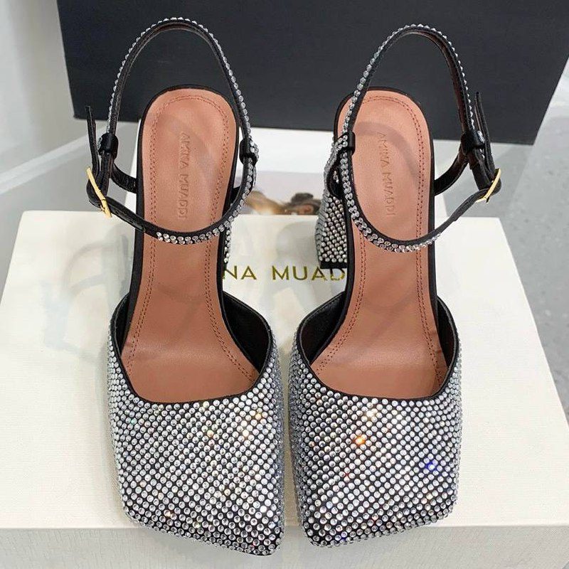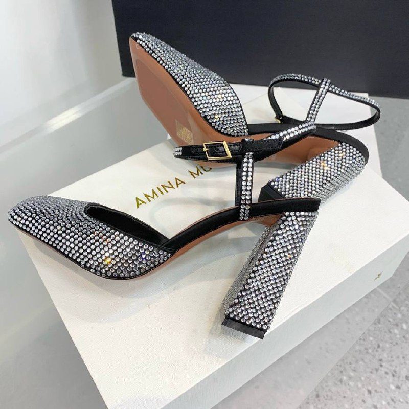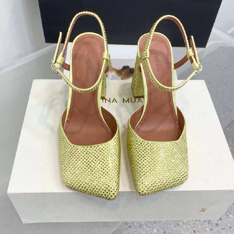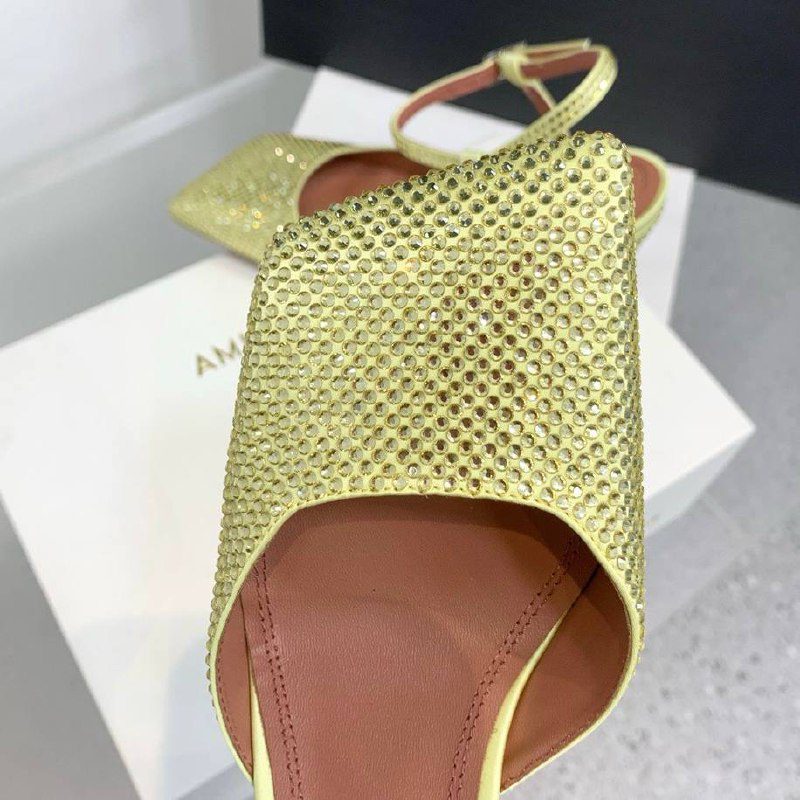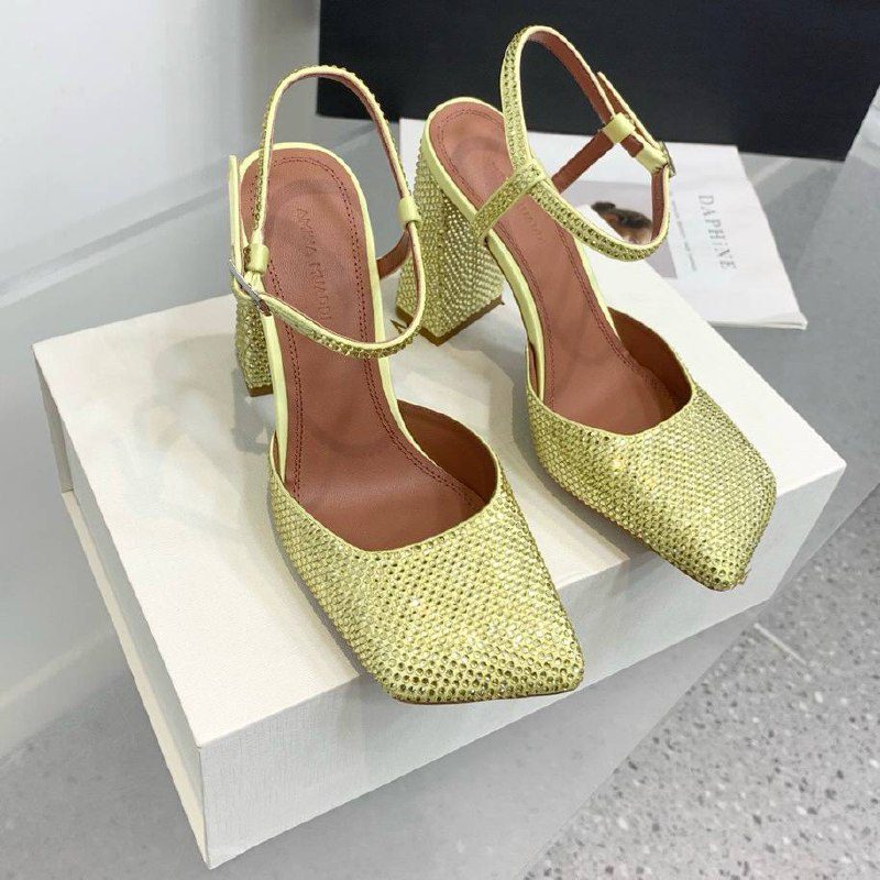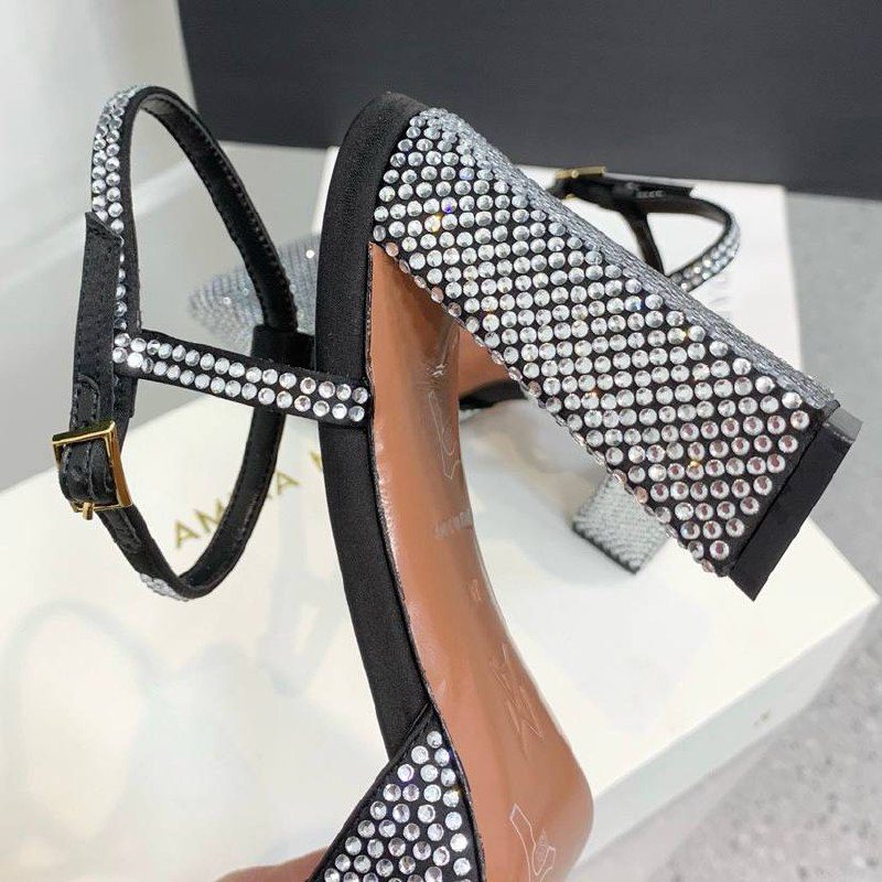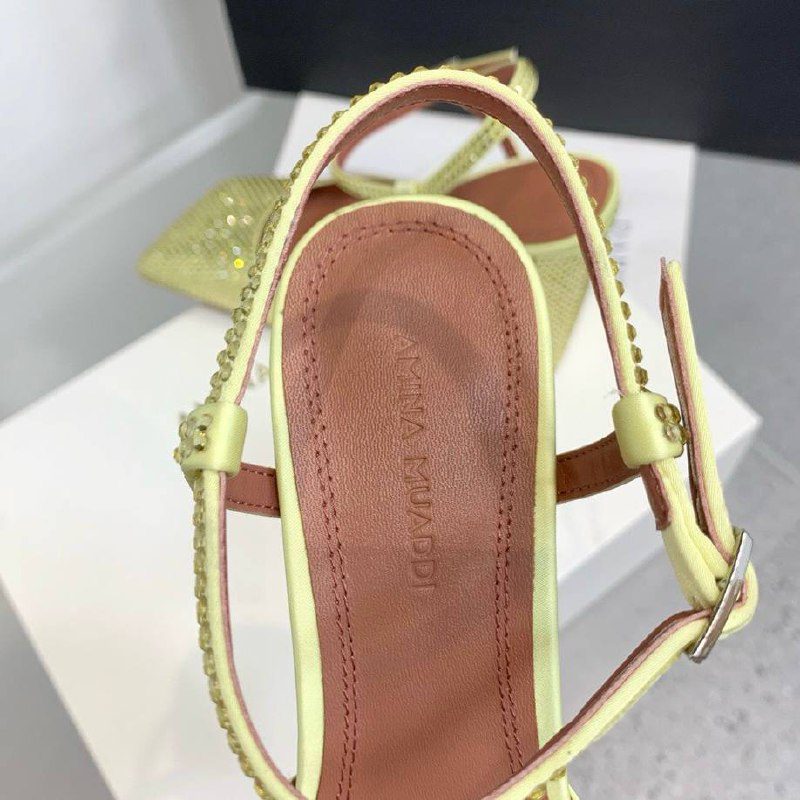 Туфли в стразах Amina Muaddi Charlotte 95 сделаны из натуральной кожи. Данная модель на массивном каблуке. Купить туфли можно в двух цветах: черный, желтый.Специалисты рекомендуютк данному товару.
