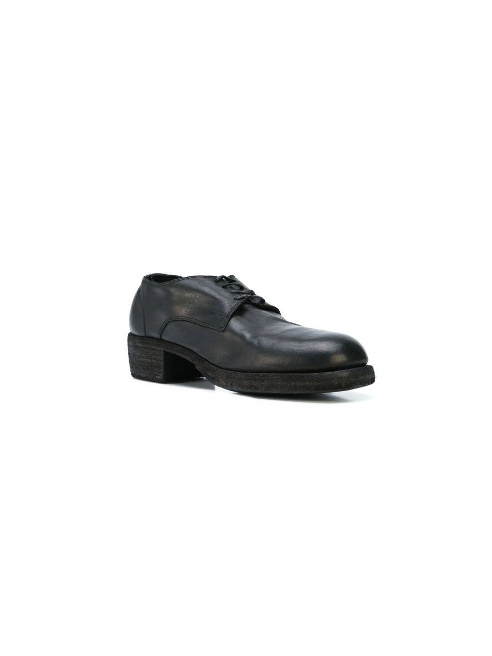 Туфли дерби Guidi выполнены из черной натуральной кожи. Они имеют закругленный носок и шнуровку сверху, внутри на стельке логотип бренда.