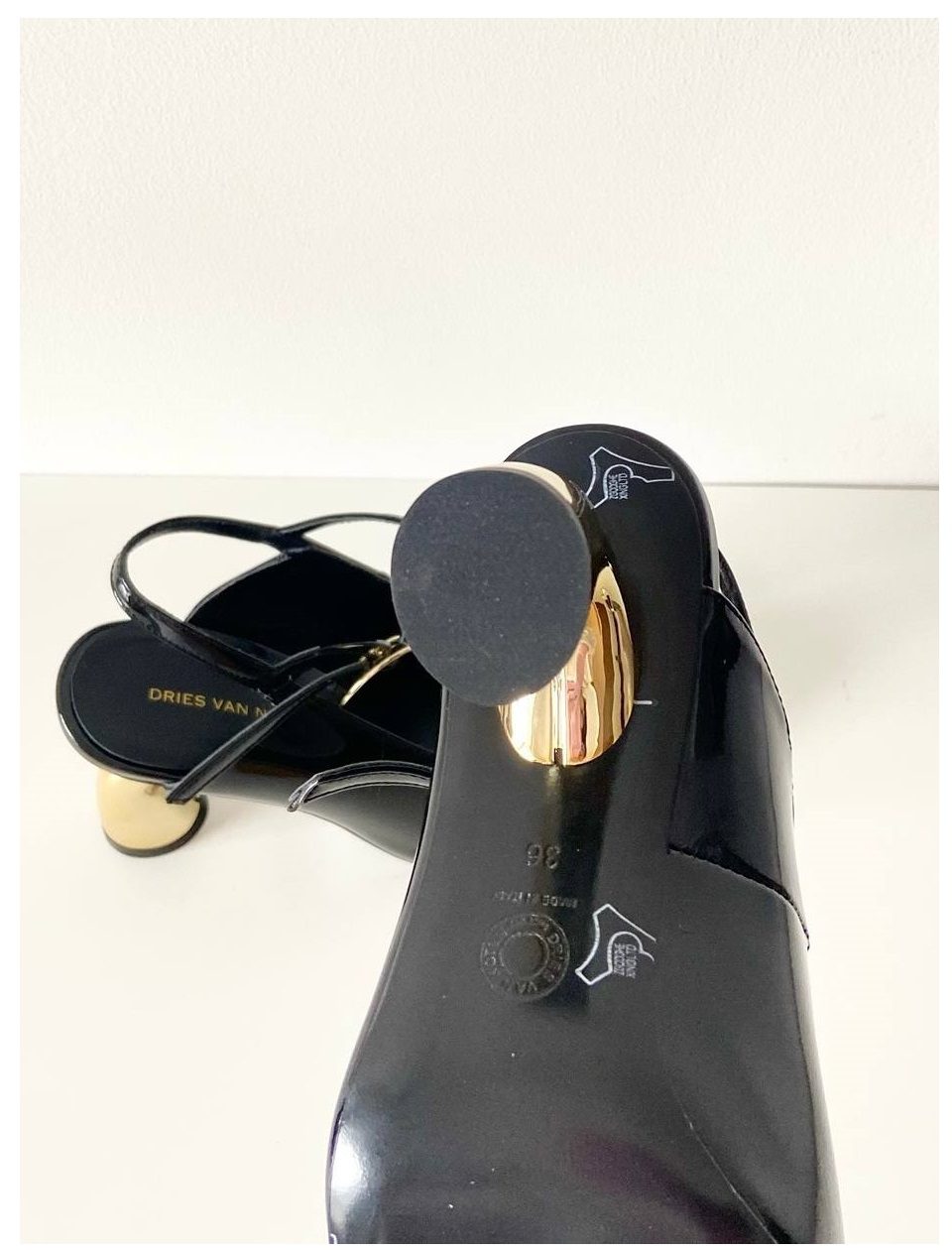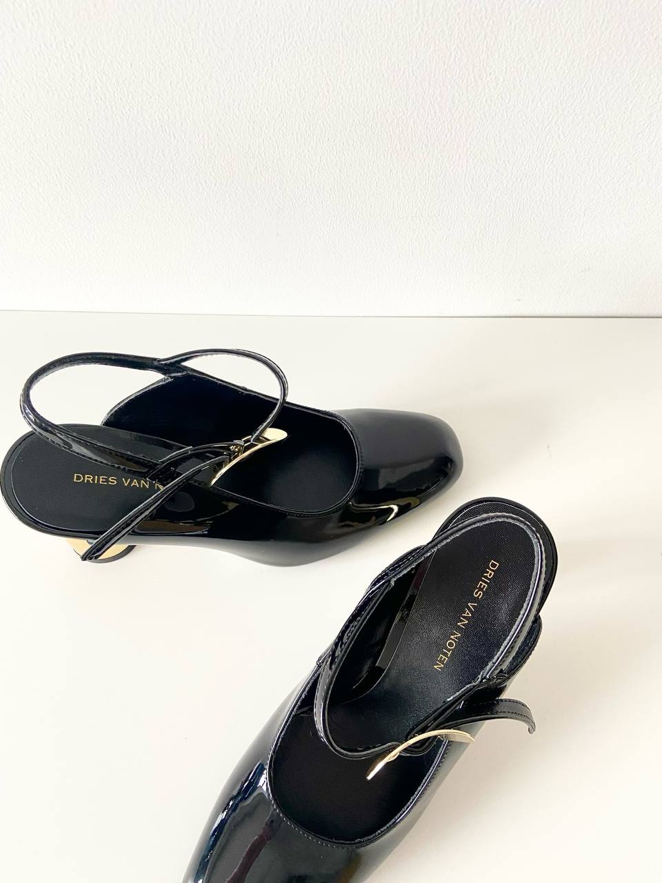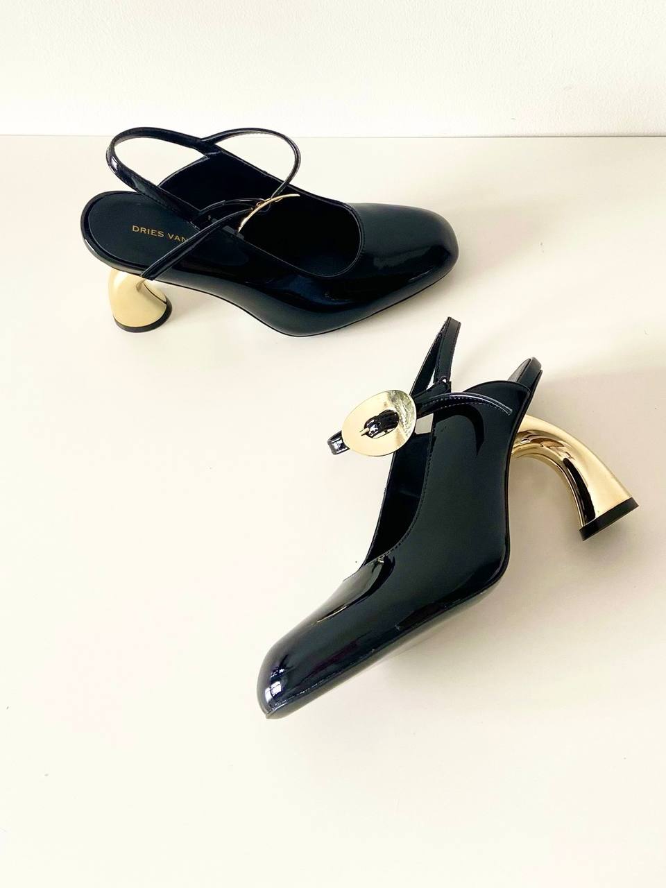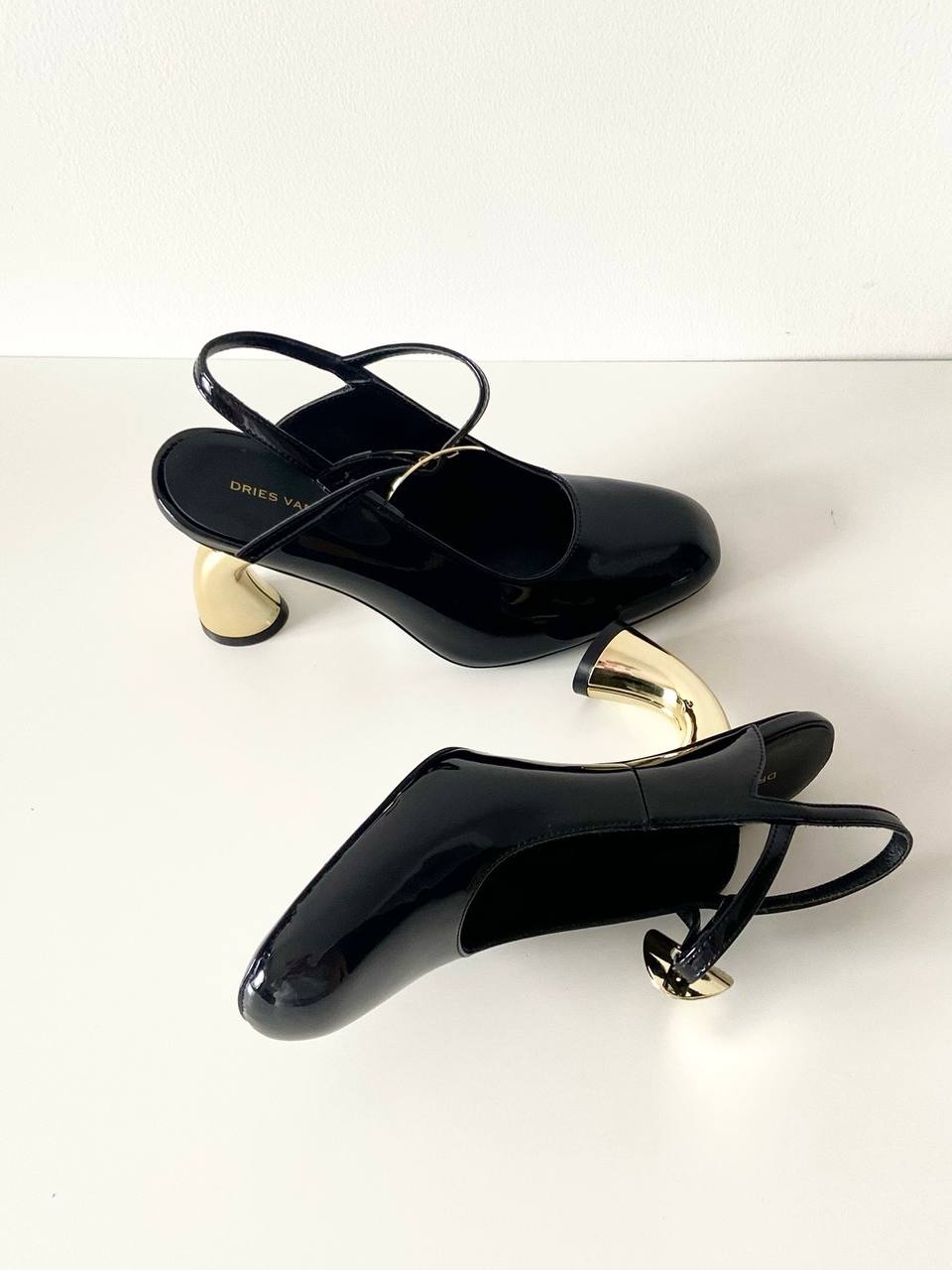 Туфли Dries Van Noten сделаны из натуральной кожи на каблуке. Данная модель имеет необычный каблук и застежку сбоку. Купить туфли Dries Van Noten можно в двух цветах: черный, белый.