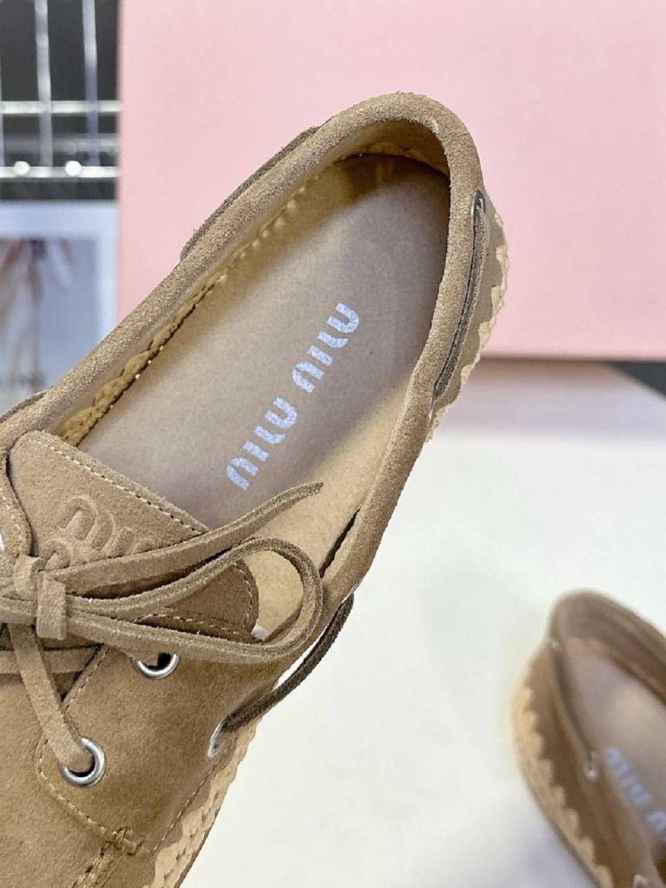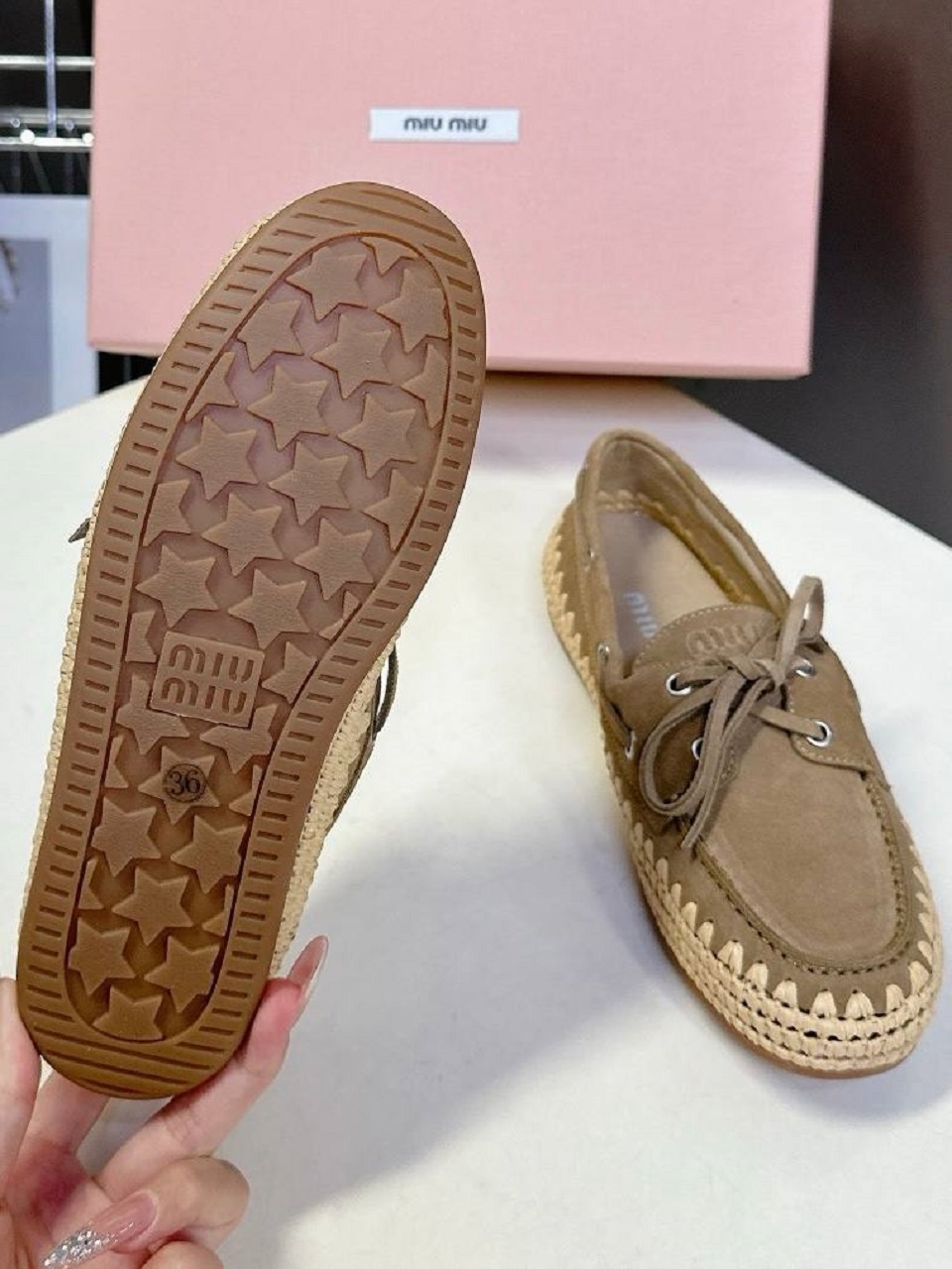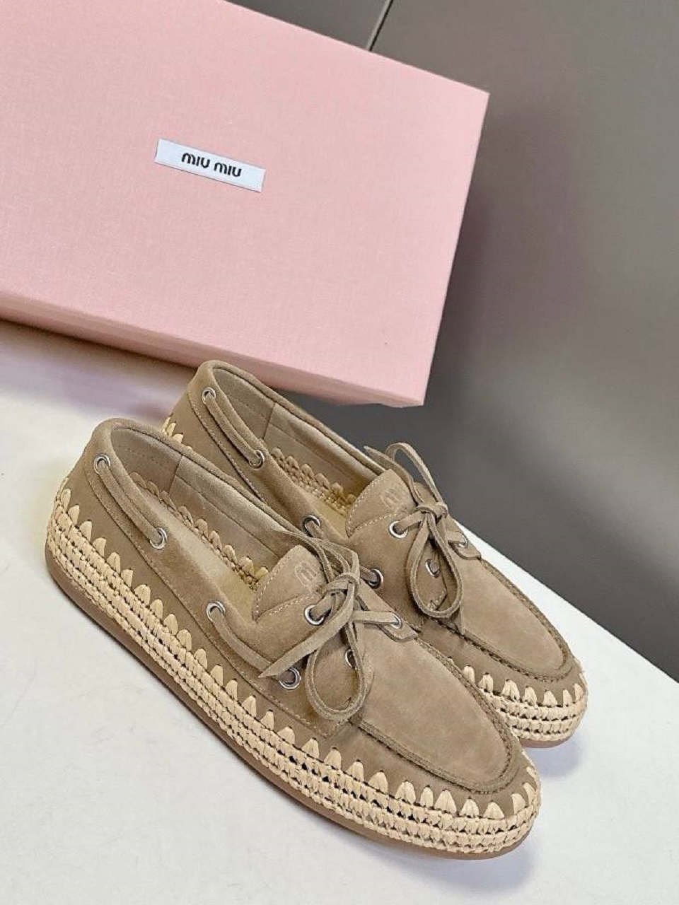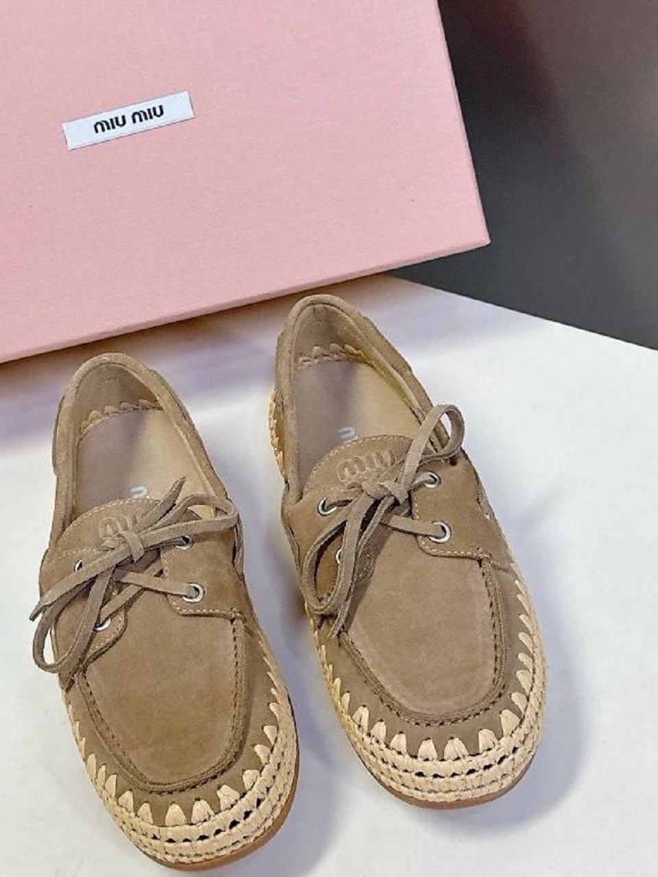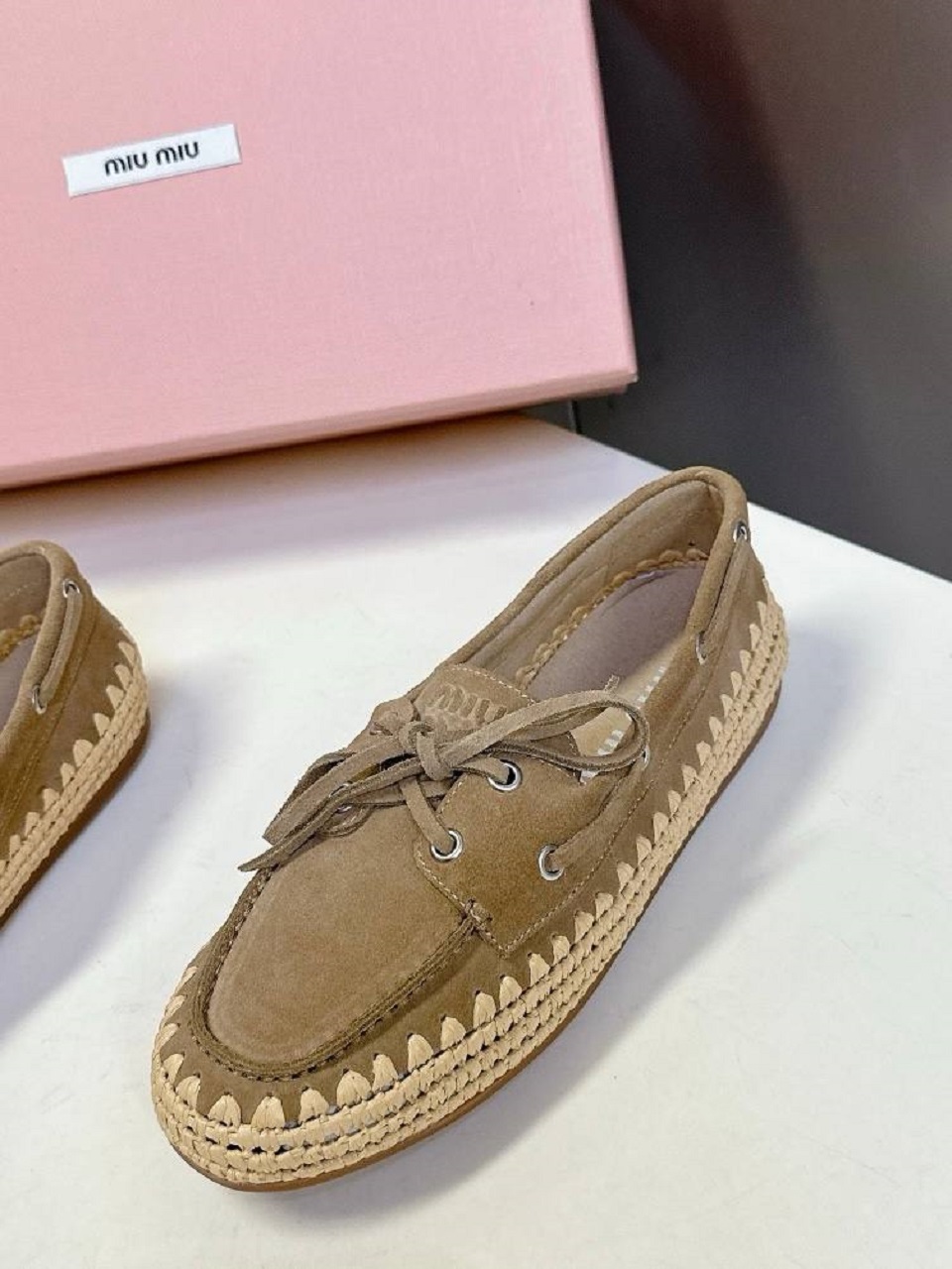 Туфли Miu Miu из замши и рафии