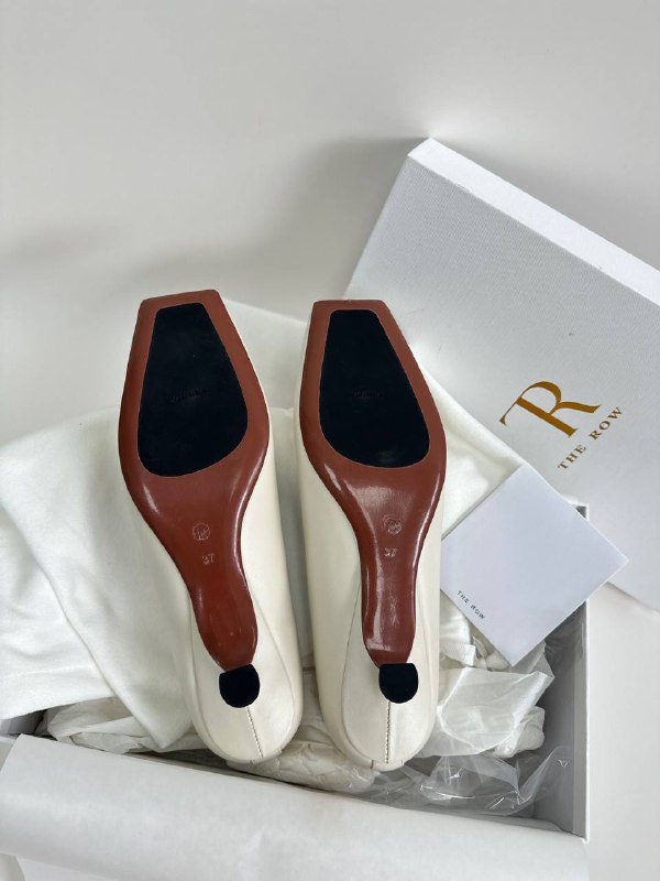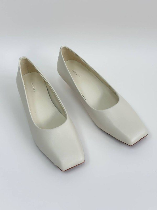 Женские туфли The Row сделаны из натуральной кожи. Туфли квадратный не острый носок, небольшой каблук. Купить туфли The Row можно в двух цветах: черный и молочный.Специалисты рекомендуют дополнить ваш образ