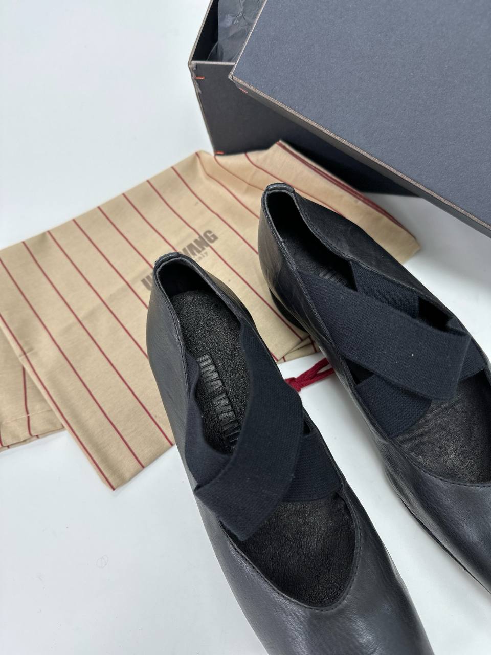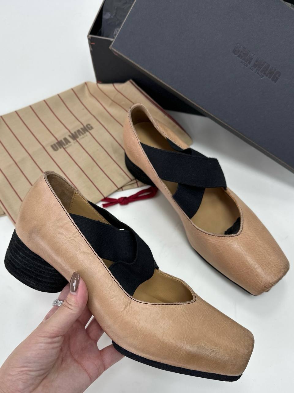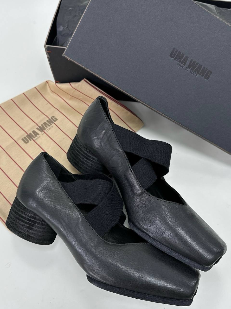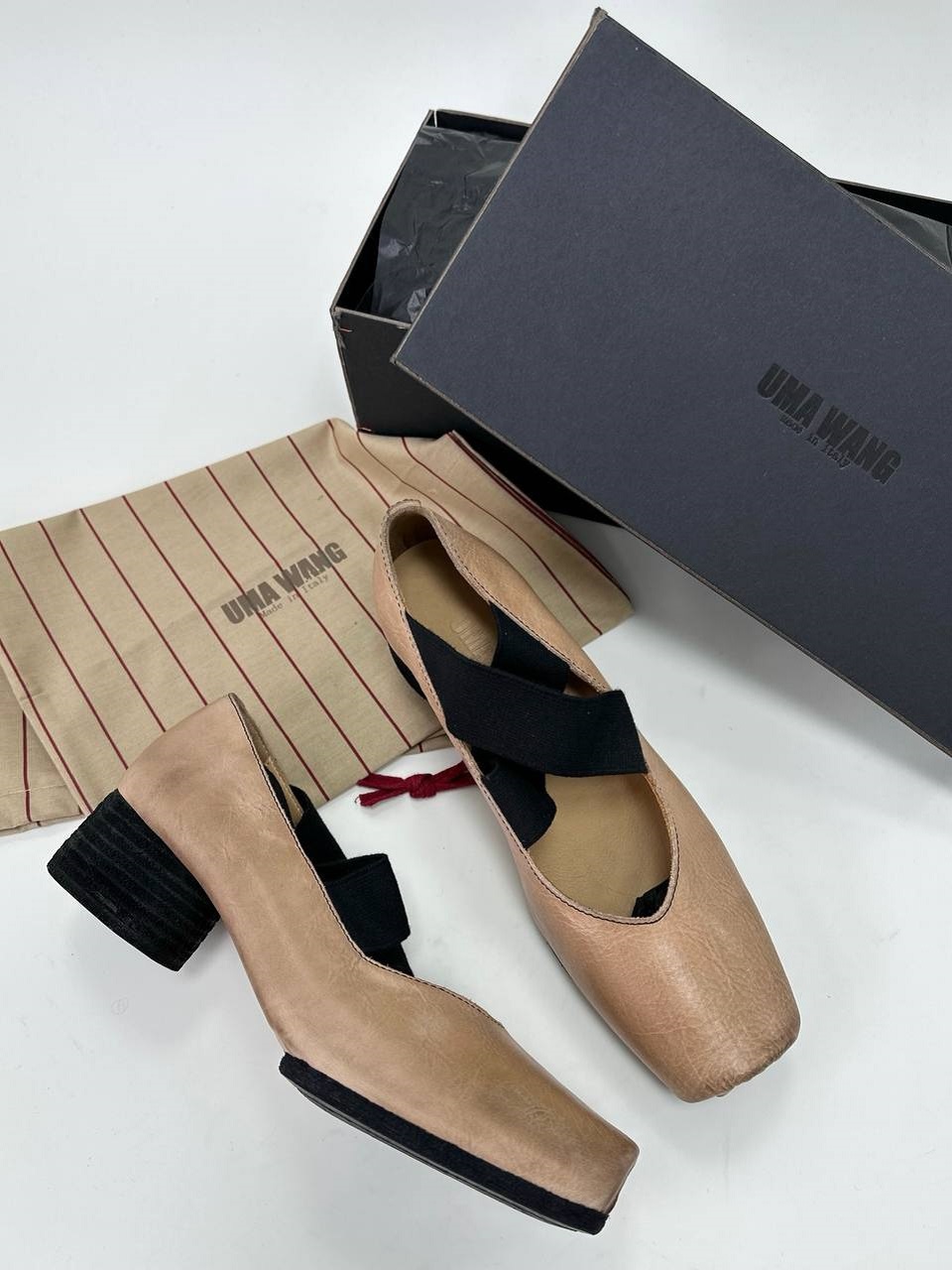 Туфли Uma Wang Ballerina смоделированы по образцу классических пуантов. Они сделаны в Италии из мятой кожи на небольшом каблуке, и имеют квадратные носки и резинки. Носите их с чем угодно: от платьев до джинсов.