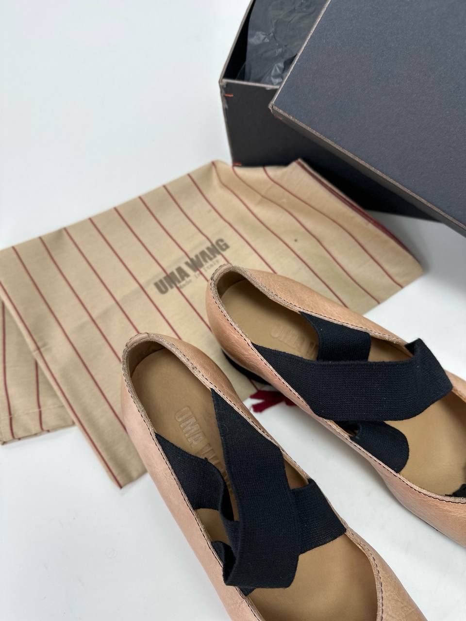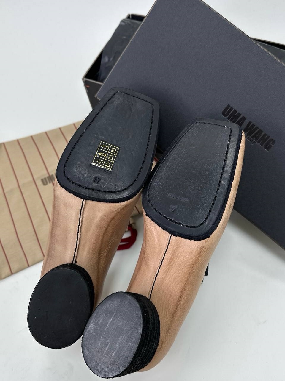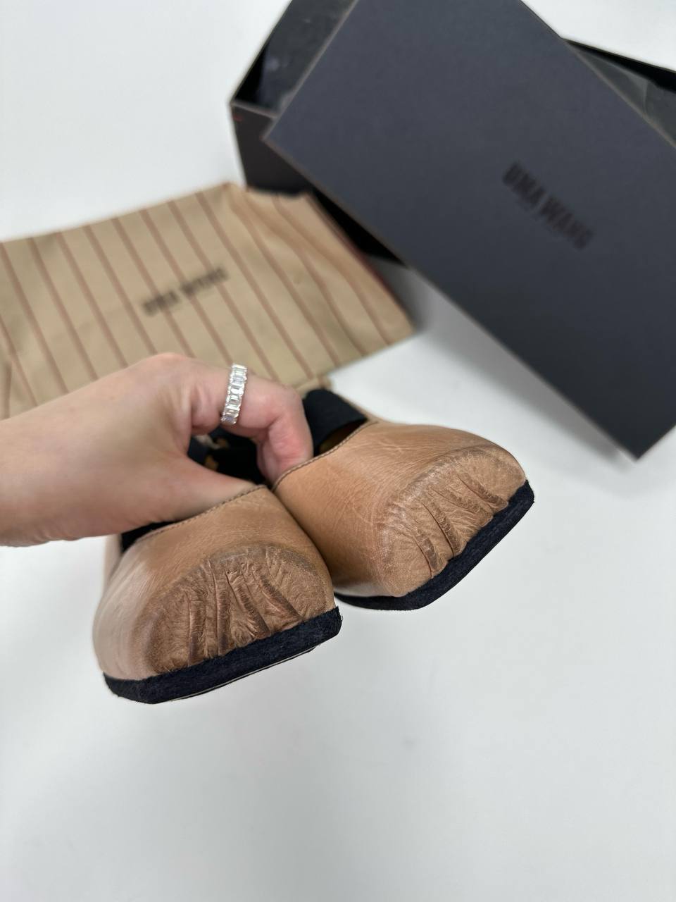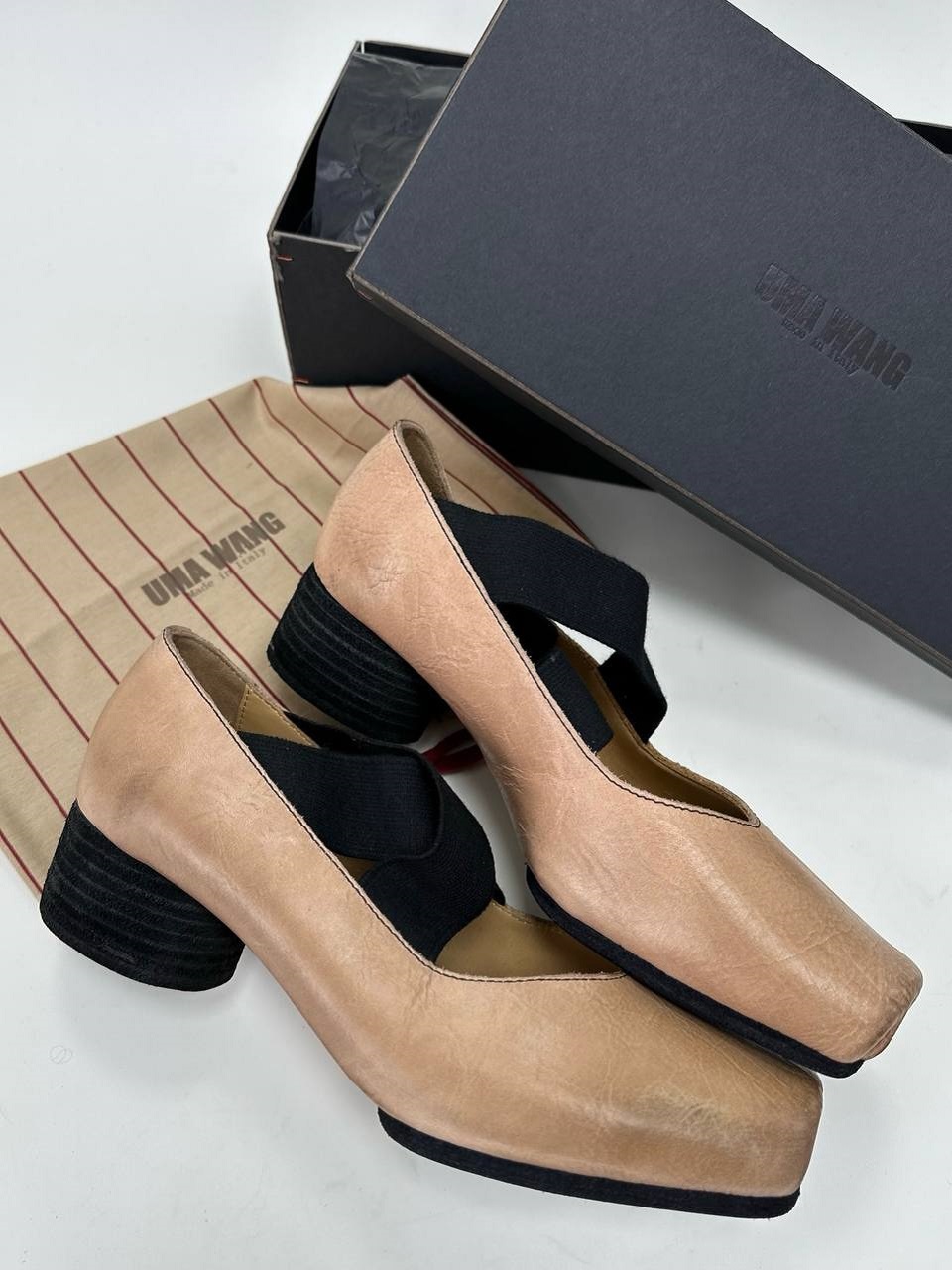 Туфли Uma Wang Ballerina смоделированы по образцу классических пуантов. Они сделаны в Италии из мятой кожи на небольшом каблуке, и имеют квадратные носки и резинки. Носите их с чем угодно: от платьев до джинсов.