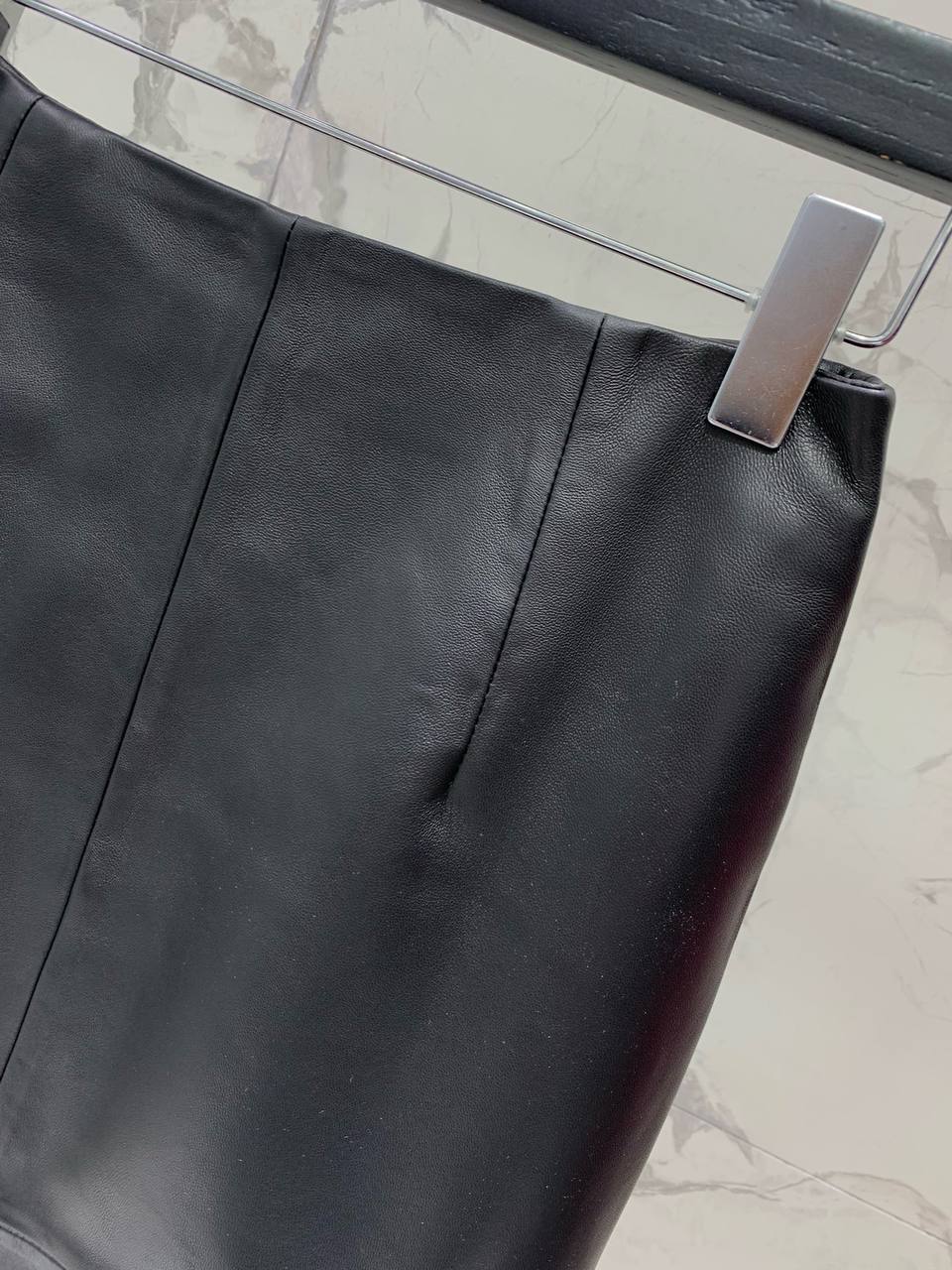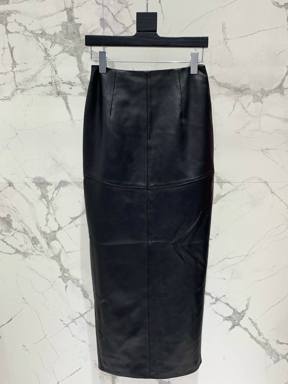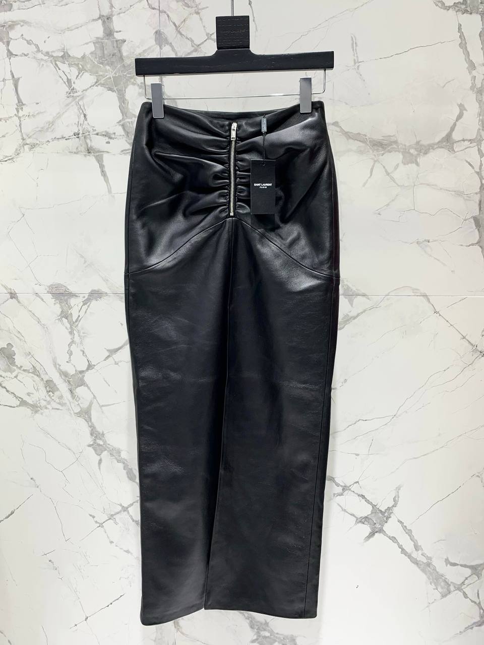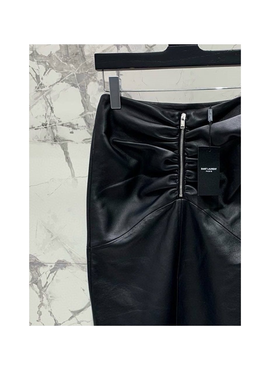 Юбка с разрезом Saint Laurent сделана из натуральной кожи. Сверху стянута и застегивается на молнию. Купив юбку вы дополните свой вечерний и повседневный образ.