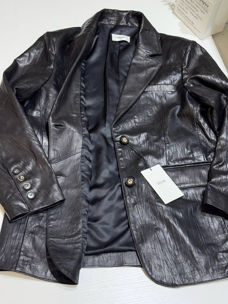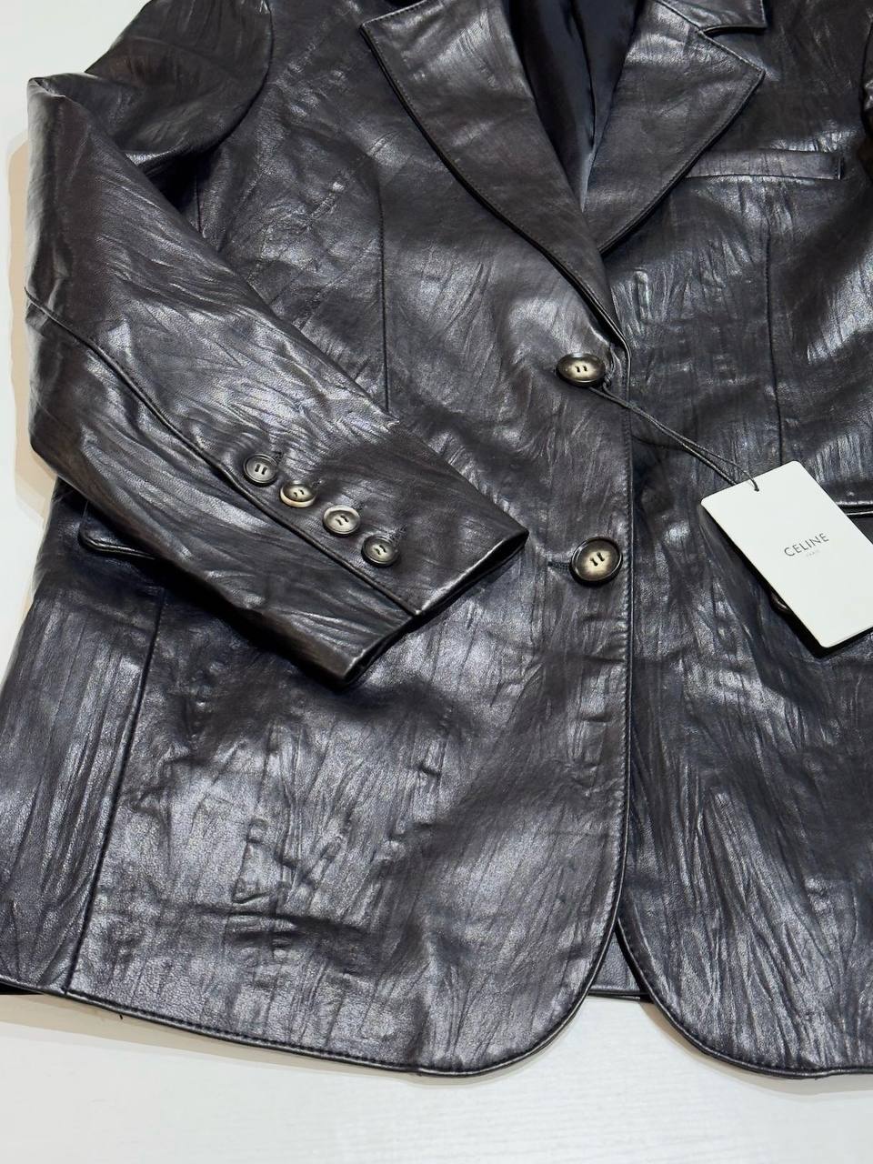 Жакет кожаный Celine сделан в деловом стиле. Застегивается на пуговицы и имеет карманы. Купив жакет Celine по скидке вы порадуете себя и дополните свой браз.