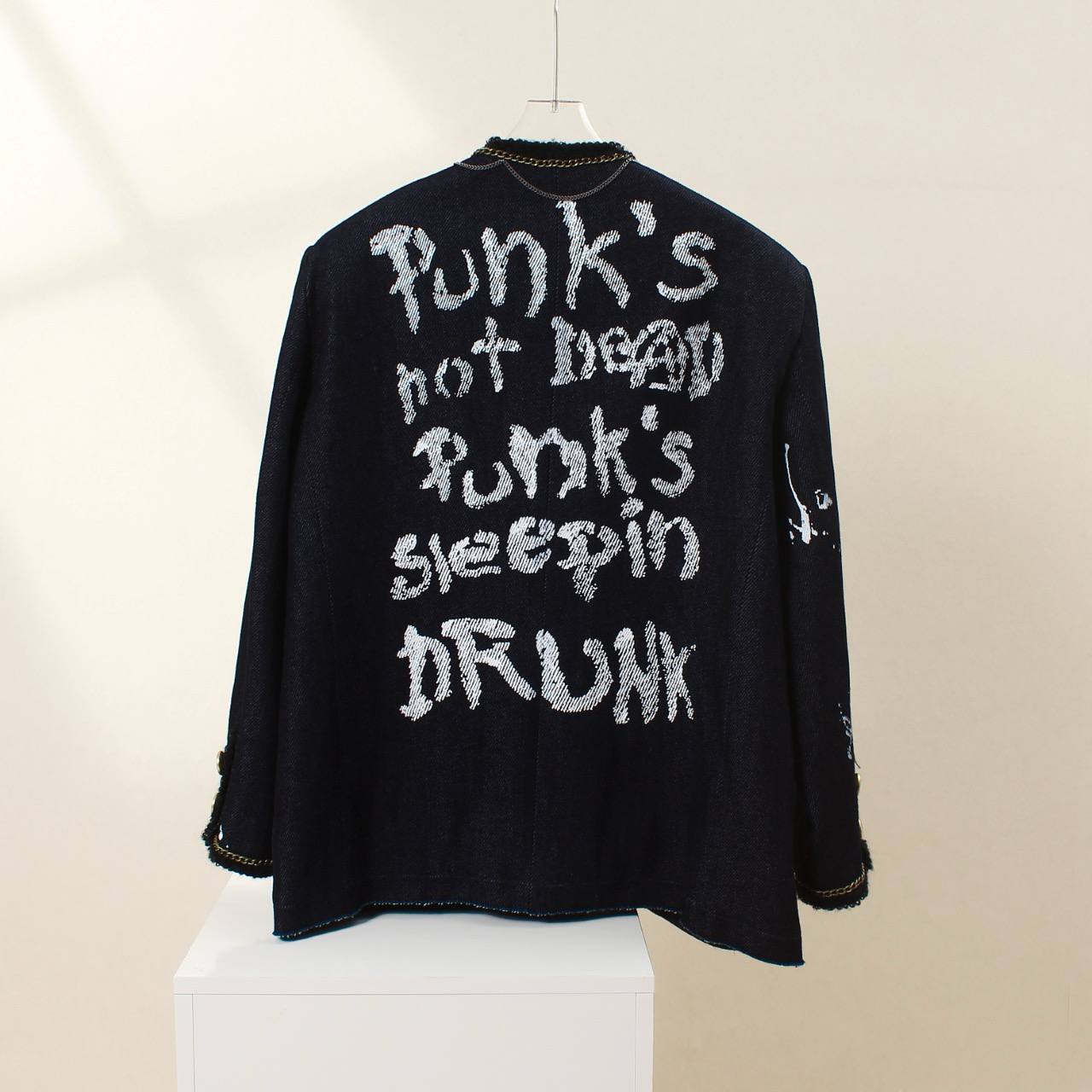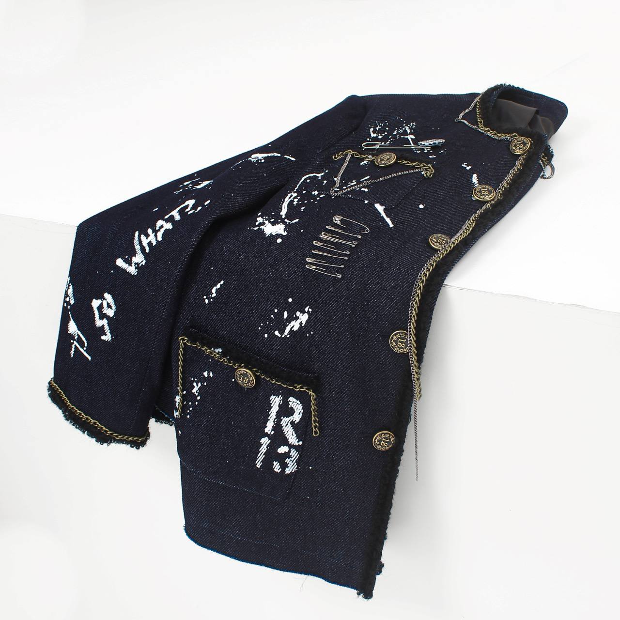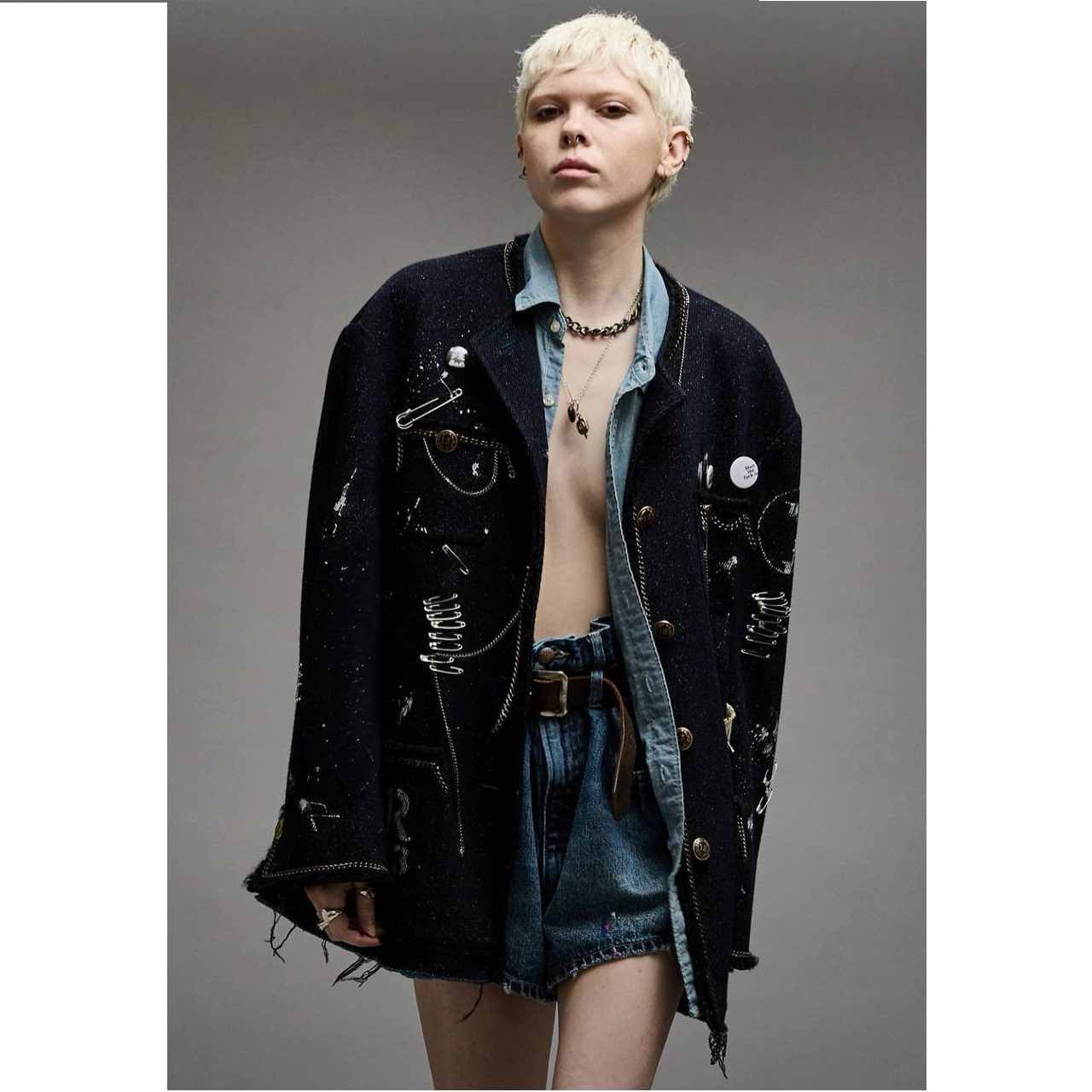 Жакет R13 Punk в черном цвете сделан из хлопка и шерсти. Данная модель украшена надписями и фурнитурой. коллекция 2024