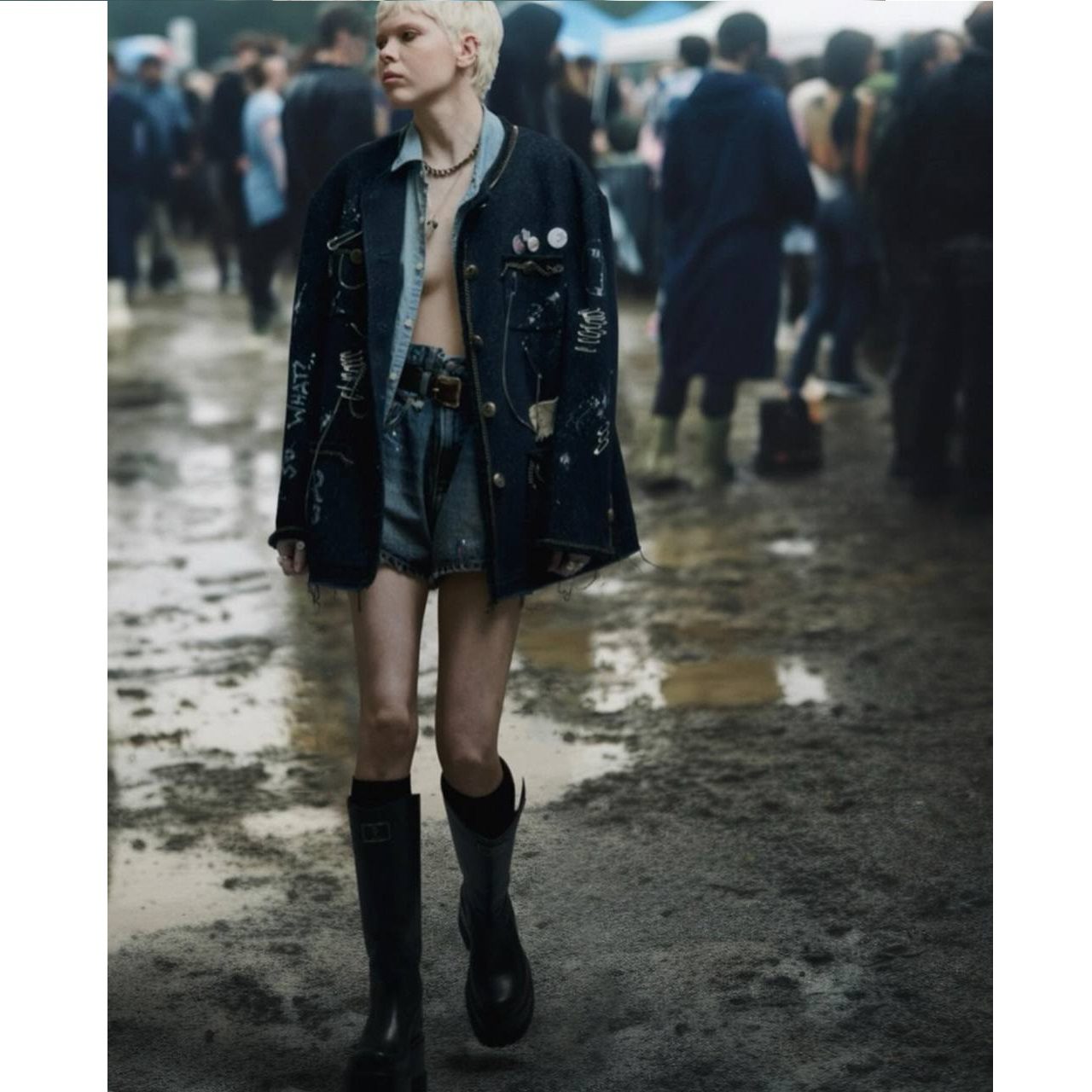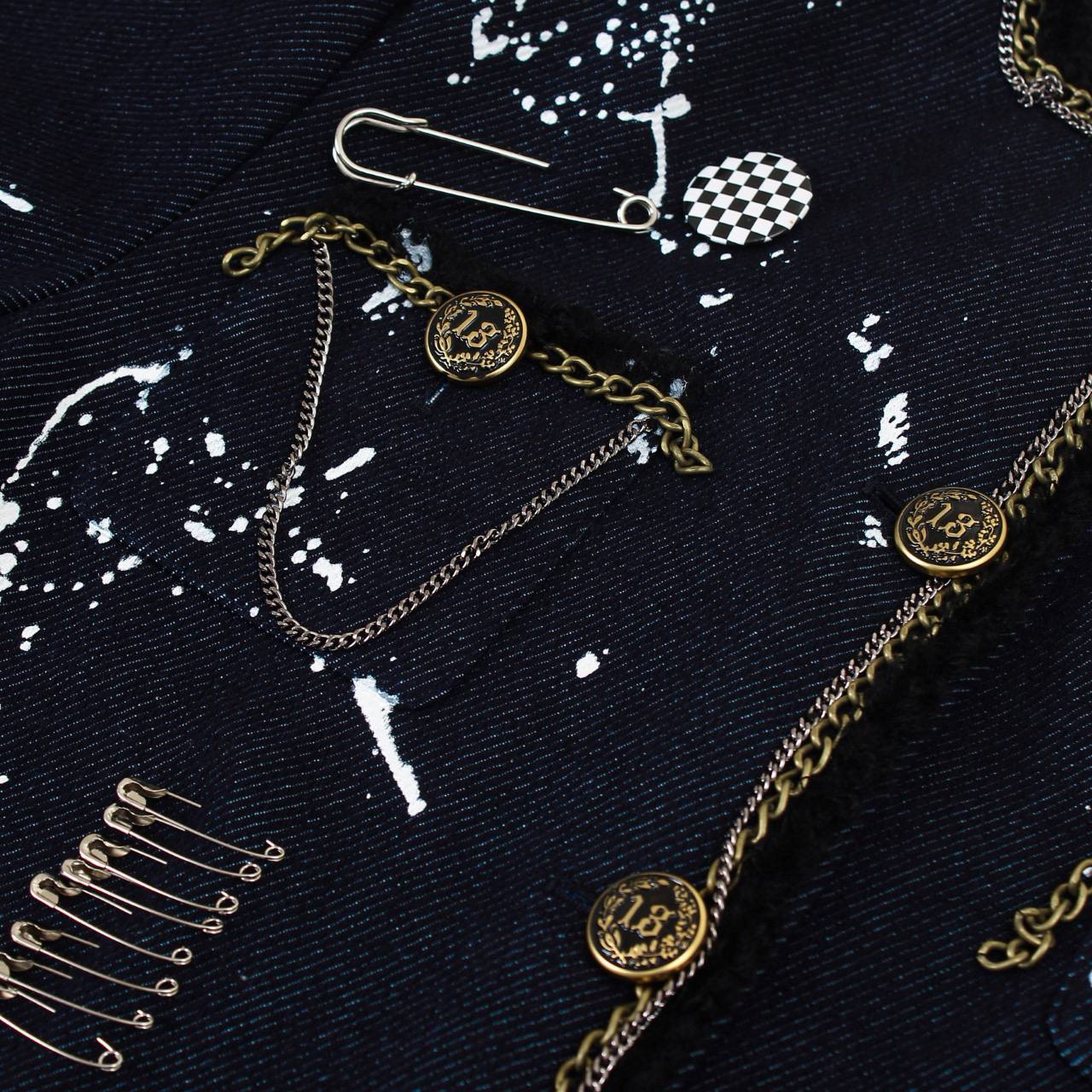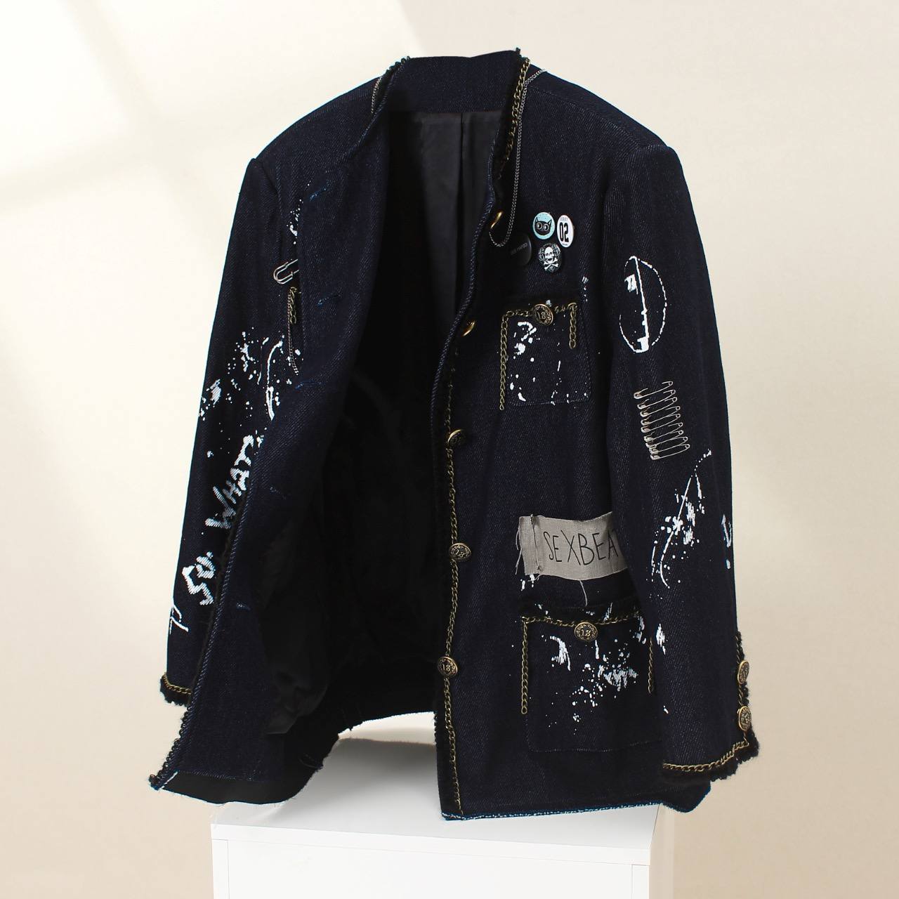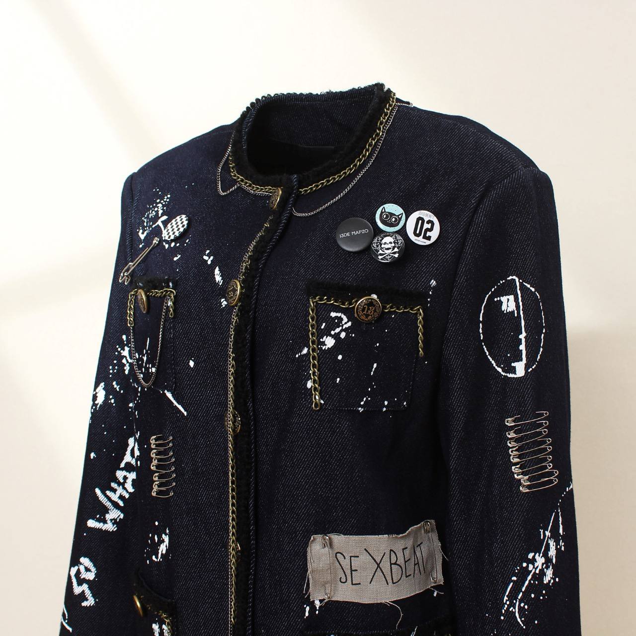 Жакет R13 Punk в черном цвете сделан из хлопка и шерсти. Данная модель украшена надписями и фурнитурой. коллекция 2024